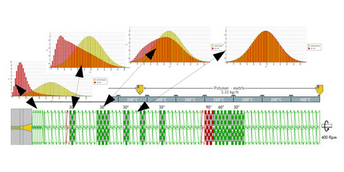 同方向回転二軸押出成形機の利点は、高い混練能力です。ルドヴィックは混練性能を分散性能と分配性能の個別に評価できます。