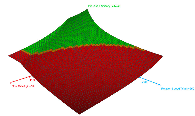 | ルドヴィックの活用 | ルドヴィックは、試験ラインと同じスクリュ設計を維持しながら、別のスクリュ形状を簡単に設定する事ができます 品質基準、目標押出能力、機械特性が、ルドヴィックの自動試験設定機能により、簡単にスクリーニングできます。 いくつもの構成パターンを数分で解析し、最も良い構成パターンを検出します。 成形、材料、機械的限界の全てが考慮された結果は、シンプルで見やすいカラー表示でグラフ化されます。 |